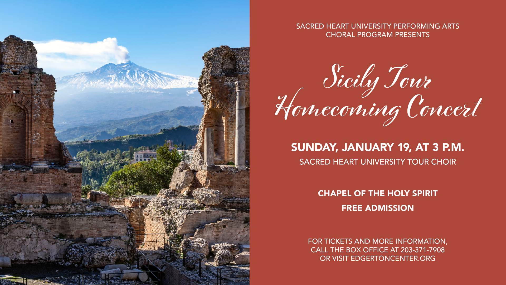 Hear, the SHU Choral Program returns from their winter break tour of Sicily, performing the joyful and varied program they gave in Catania, Ragusa, and Palermo.Â