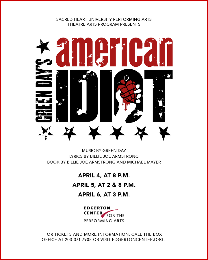 Content Warning: Green Day’s American Idiot is intended for mature audiences. This production will feature strong language, non-firing gun replicas, depictions of domestic abuse, attempted suicide, and sexual situations, as well as simulated smoking and drug use. American Idiot is a punk-rock musical featuring a live band. Sound levels may exceed typical expectations for musical theatre.